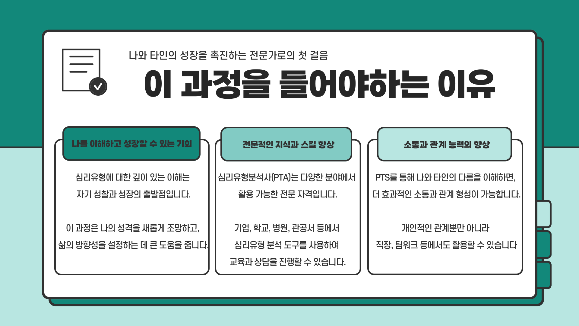 자기이해와 타인이해를 돕는 전문가 자격과정입니다.