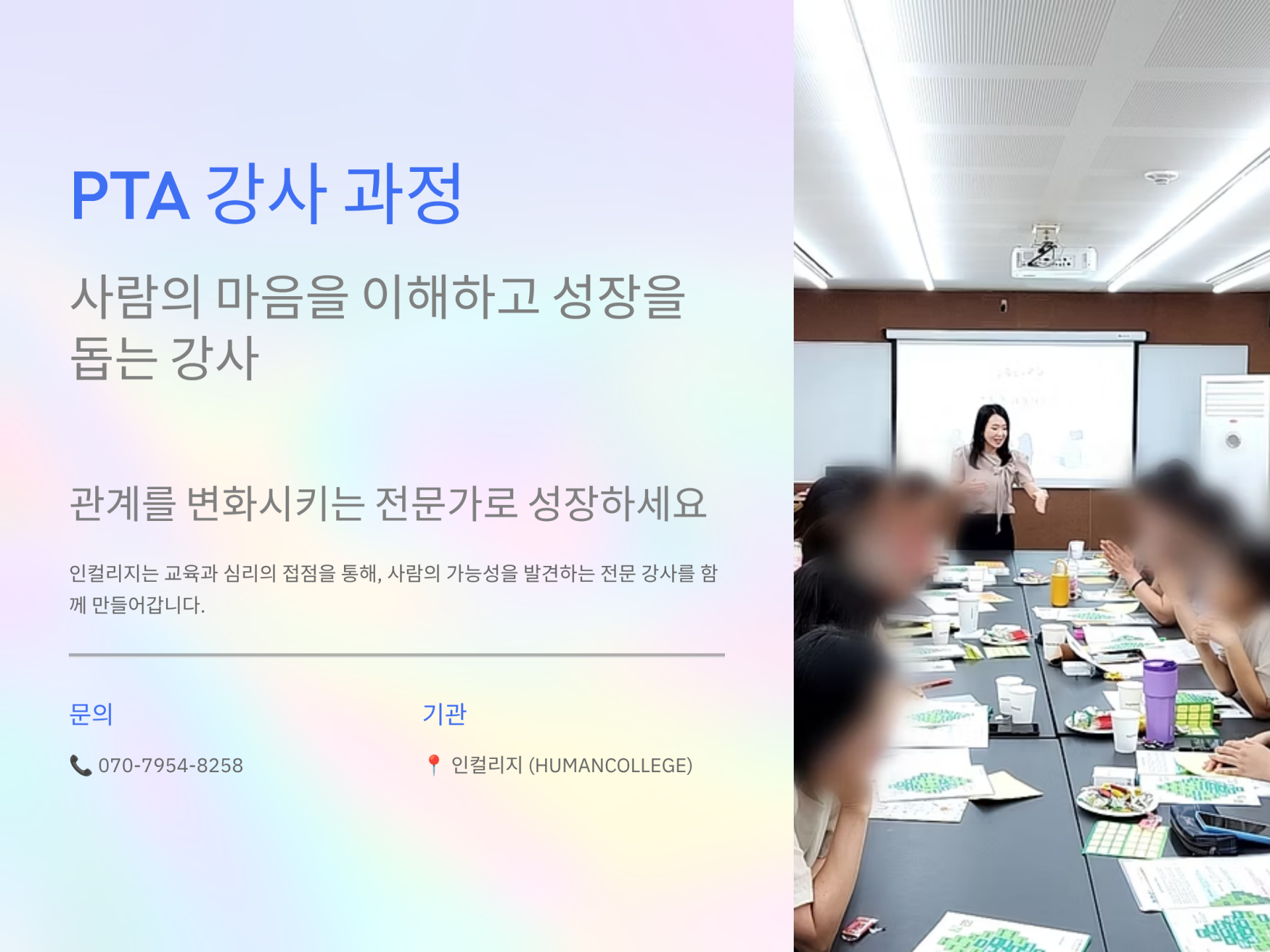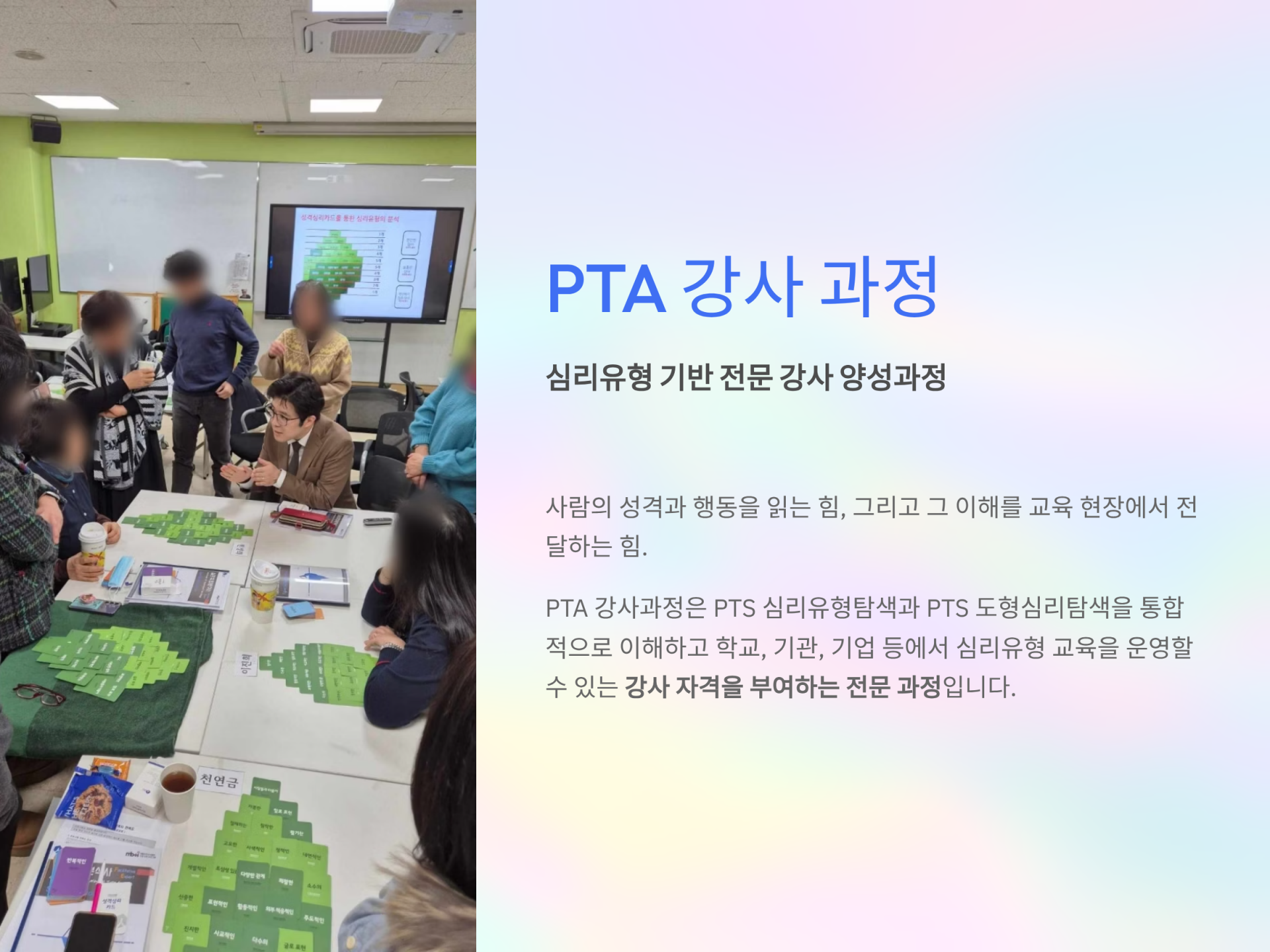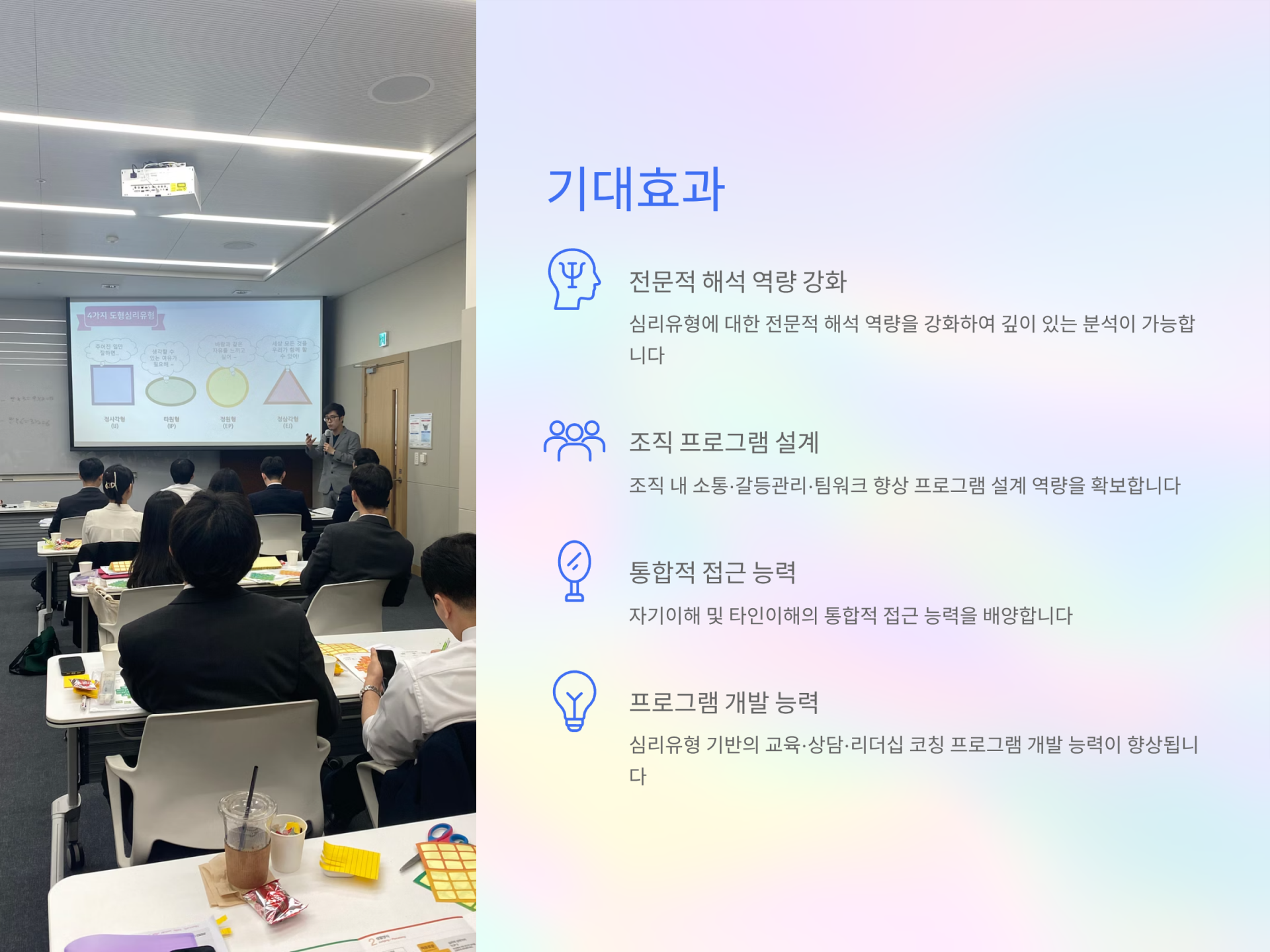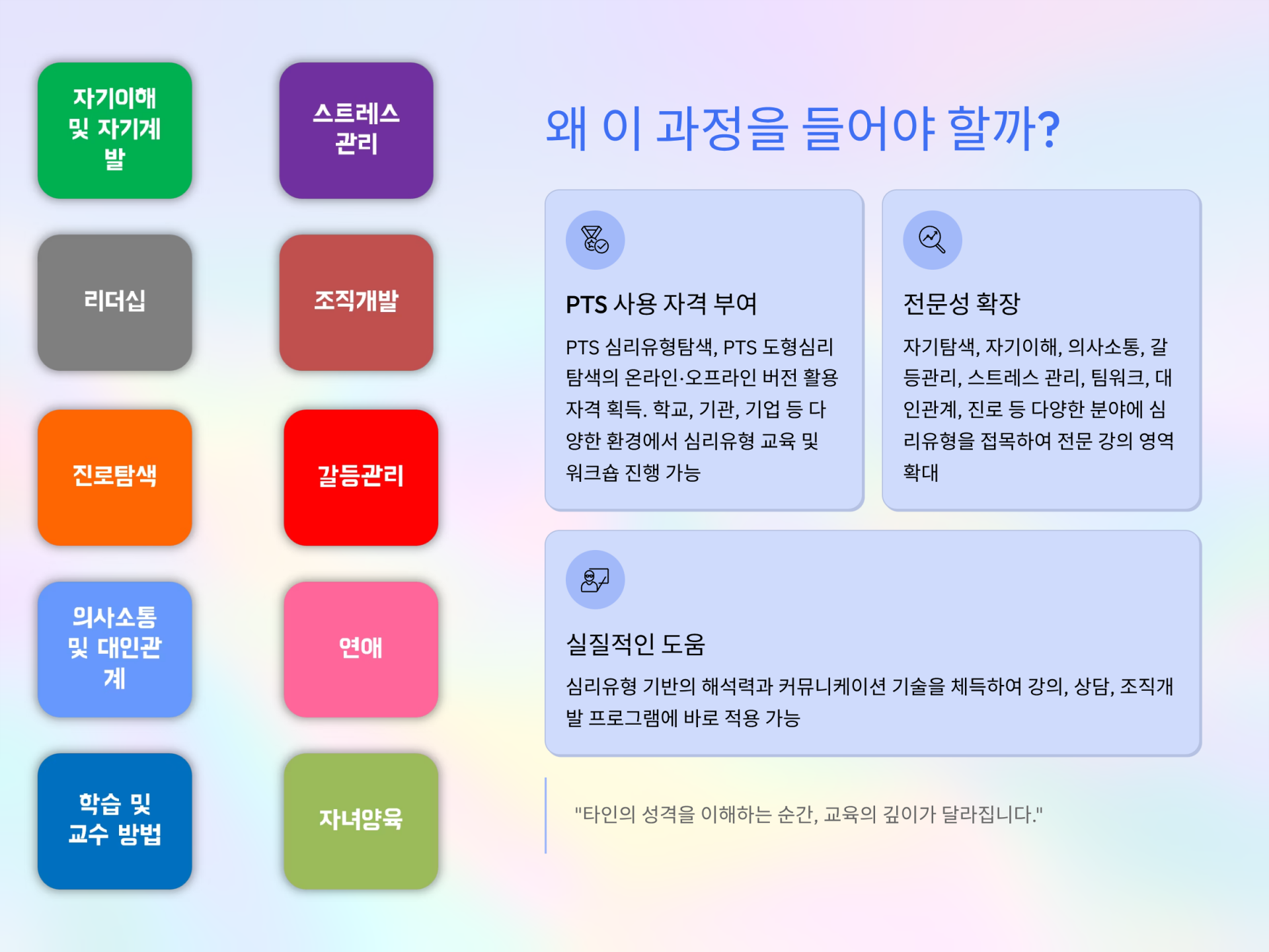 자기이해와 타인이해를 돕는 전문가 자격과정입니다.