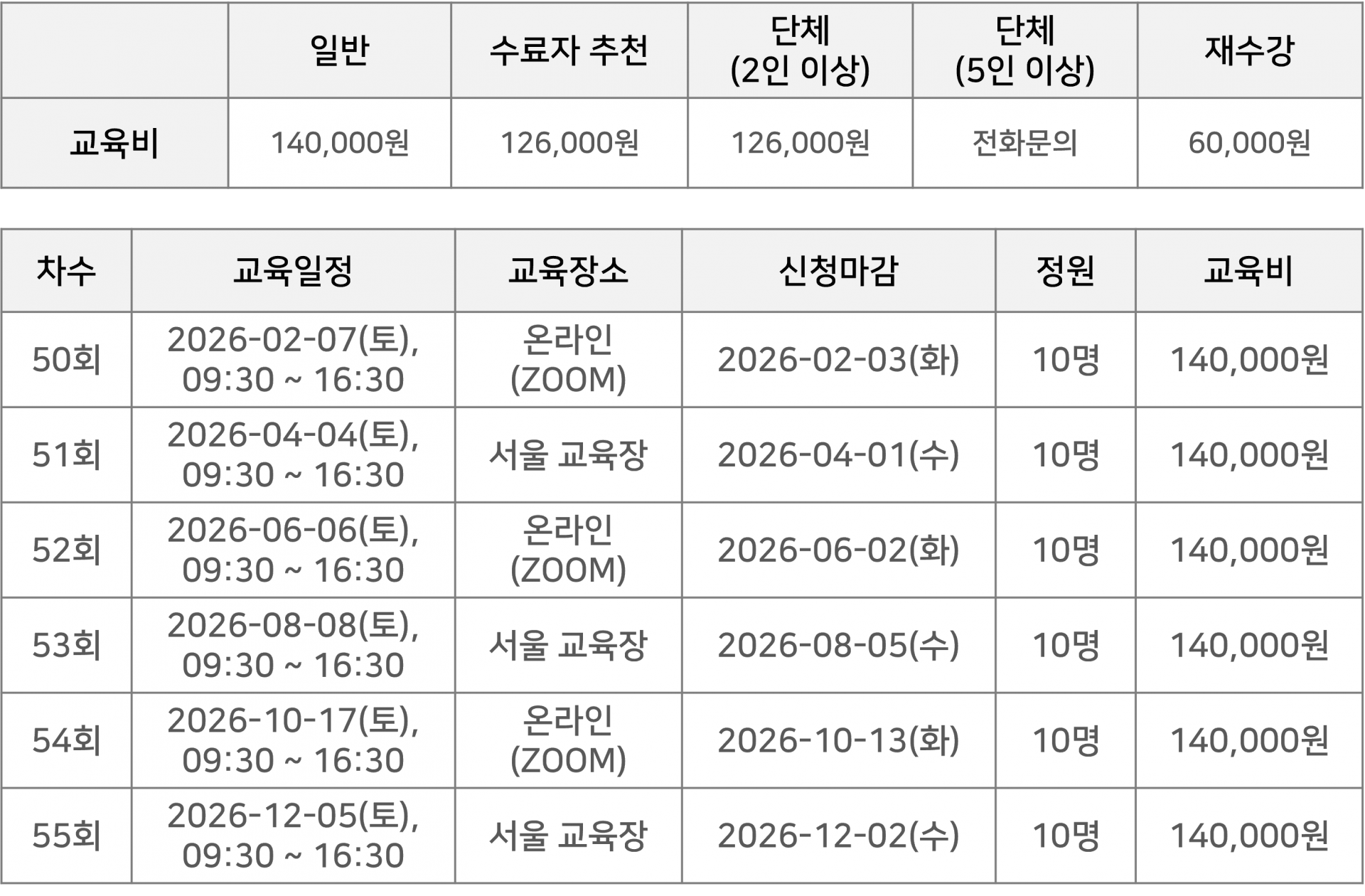 ► 교육비용 : 150,000원->140,000원